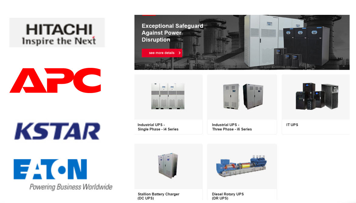 Backup solutions include small business and hybrid cloud backups, security solutions include hardware, networking solutions, and peripheral products like time recorders, printers, and handheld terminals.
